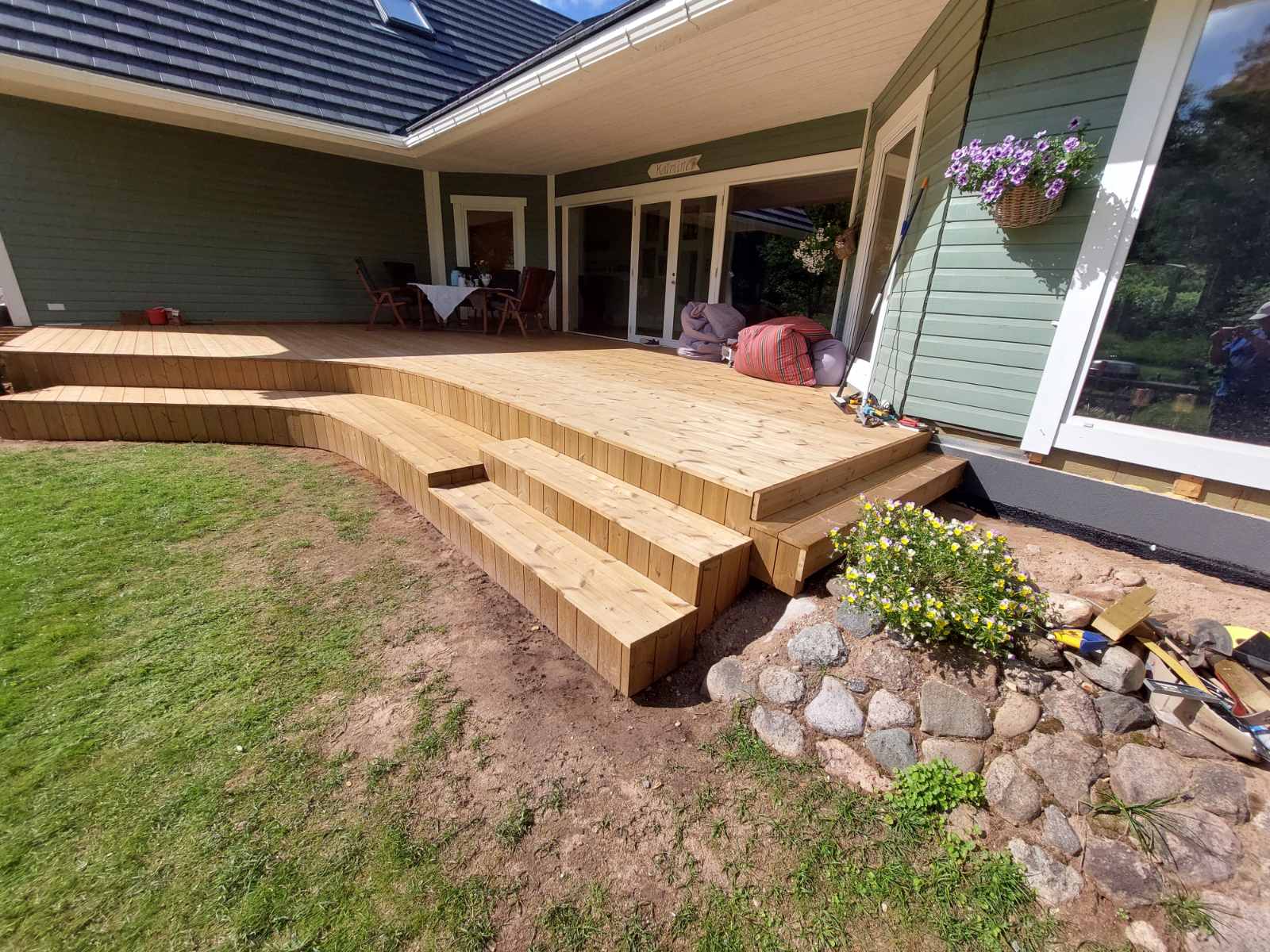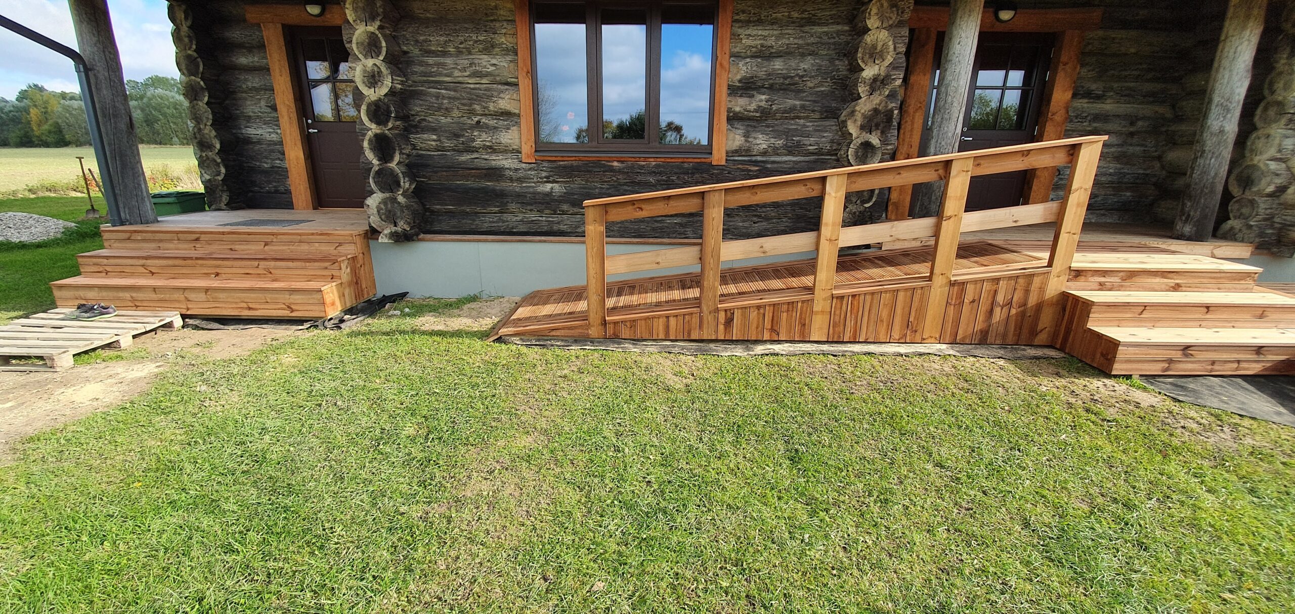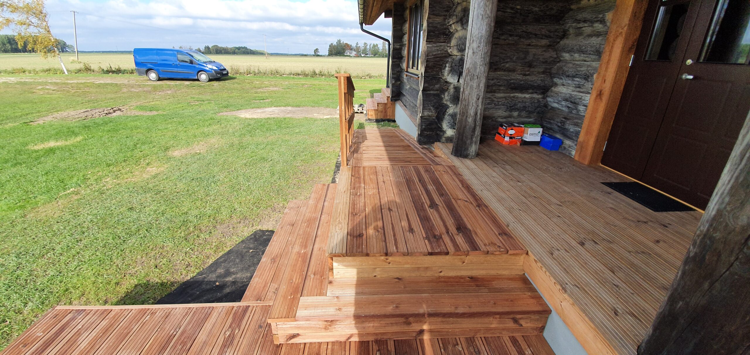 Tehtud töödEramaja ehitus Valgamaal CLT paneelidest kortermaja Palkmaja sise- ja välistööd Eramaja katuse renoveerimine, fassaaditööd ja terassi ehitus Eramaja renoveerimine Tartumaal Puitkarkass maja ehitus Muud puidutööd